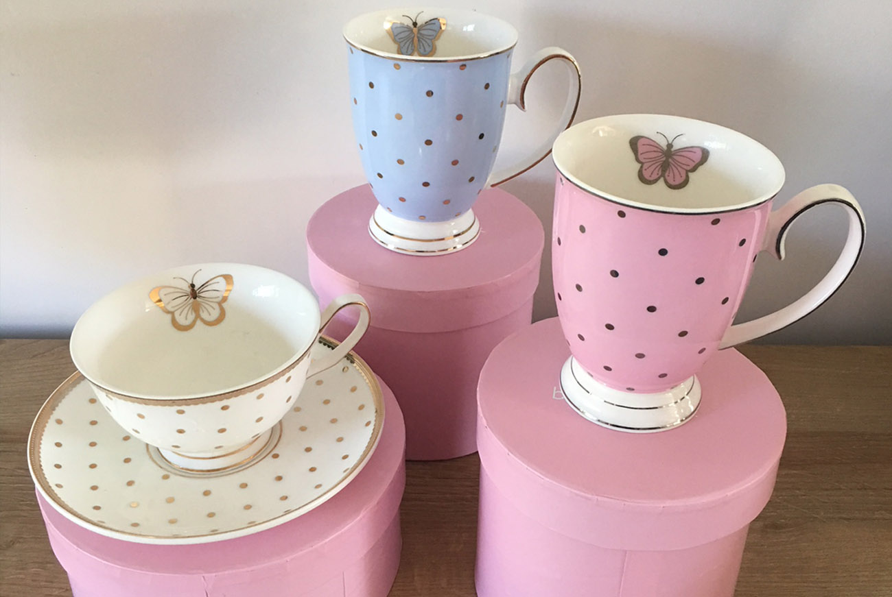 Everytime I see Lisa from Beautiful Gifts & Things post a new photo on her Instagram account it makes me want to shop, so today I placed an online order. My mum had been eyeing up my tea cup as she swears by china cups, so I treated her to the Miss Darcy butterfly mug in powder blue which has gold spots like my cup and saucer, and I also treated myself to the pink one. They are really good quality and being china my tea stays warmer for longer.