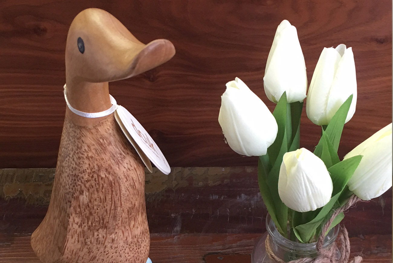 OMG she has sent me one of her DUCKS! I love seeing her duck posts on Instagram they all have such individual characters. Now where will I put the duck? How will I be able to photograph him and show him off in my home? I will have to give this some thought, it is a really cute duck and to think someone has hand carved it, such talented craftsmen. I just adore its little welly boots. She has also sent me these pretty tulips, they are going to look great in my home.