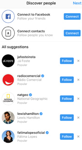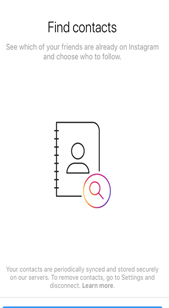 If you want your telephone contacts to follow you, you can connect here to find contacts who are on Instagram. I have skipped this step.