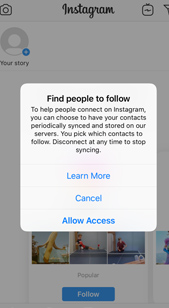 You have the choice of Instagram syncing periodically to your contacts. It will notify you when someone you knows has joined. This is your personal preference wether you do this or not. .