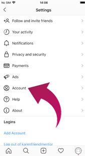 Scroll down and click on account