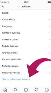 Scroll down and select switch to business account.