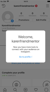 If you have chosen not to link to a Facebook account this screen will appear. Simply select do not connect to Facebook now. You are now all set up. Your insights will take a few days to be available as Instagram needs to find the information on your future posts. For more on understanding insights click here .