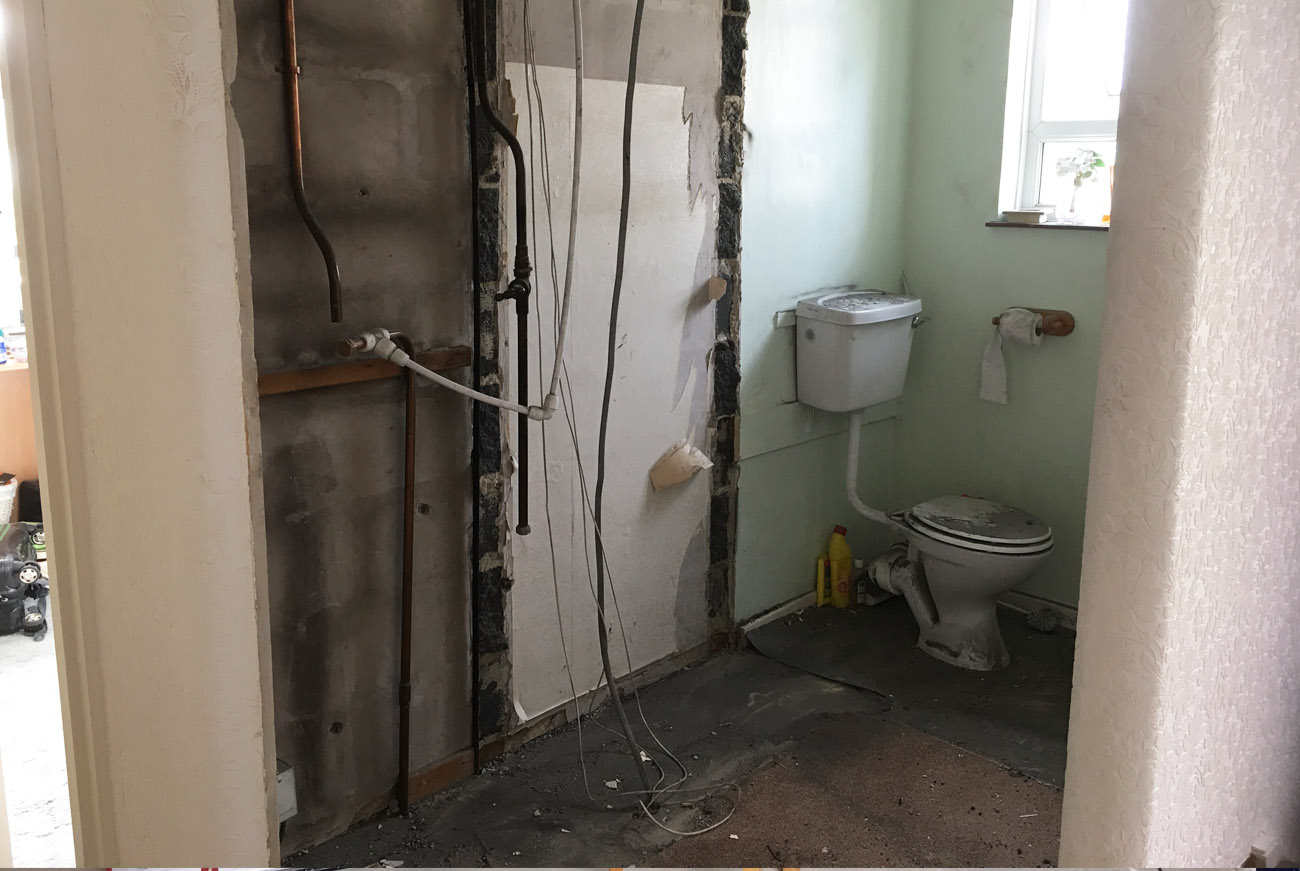 Now the plumber has installed our new bigger tank and boiler in its new airing cupboard, we have been able to remove the old one and knock down the walls.