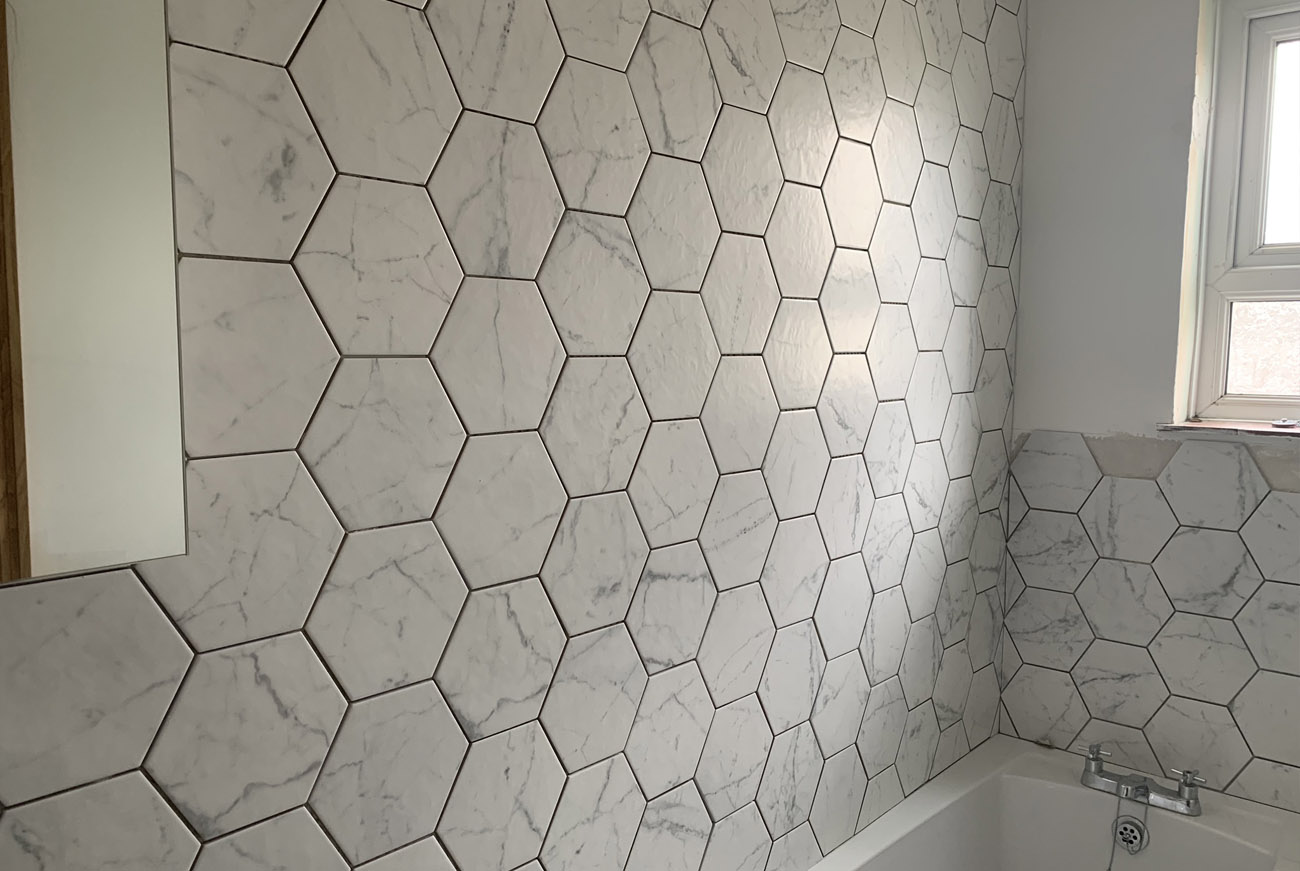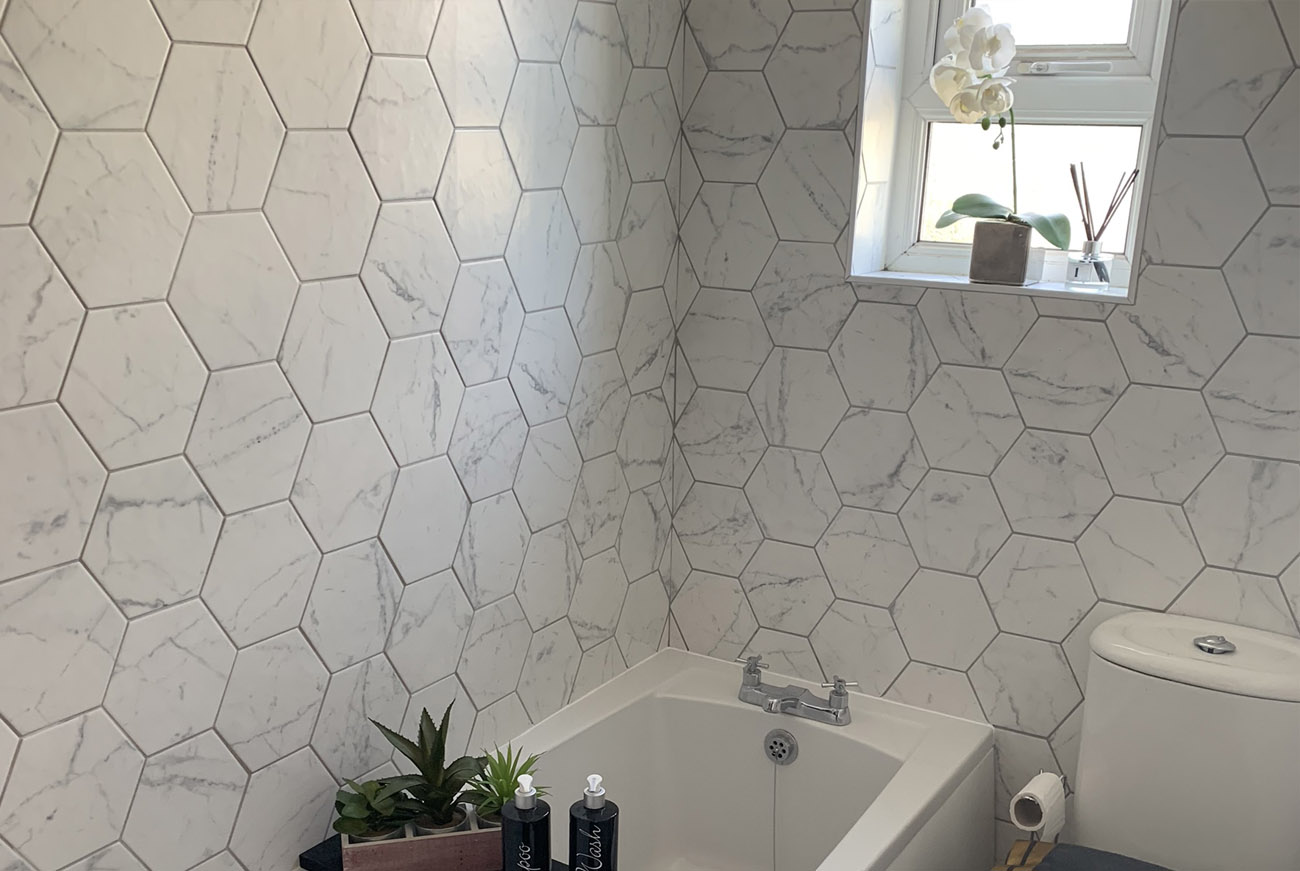 I order some sample tiles from Tons of Tiles which arrived the next day. The Hexagon Carrara Marble Effect Wall & Floor Tile and I knew as soon as I opened the box this was the tile I wanted.
