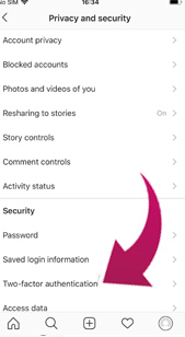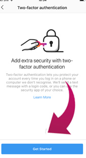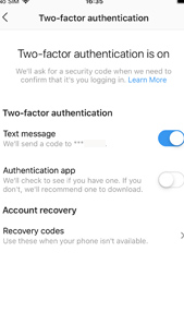 Starting with ensuring we have Two Factor Authentication set up. Should anyone try to login to your account, Instagram will send you a text message with a code. This way you will know someone is attempting to and can change your password immediately.