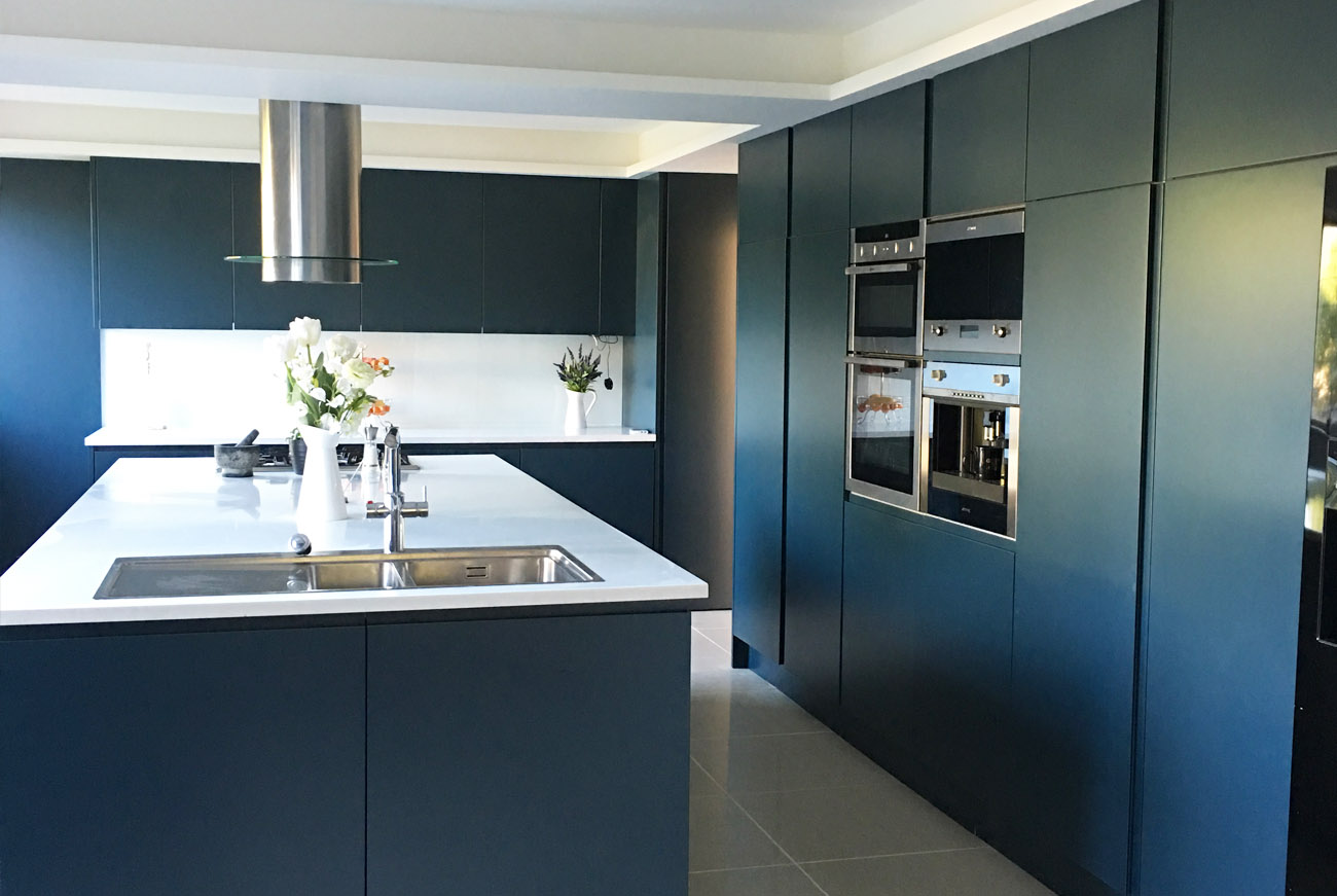 Wow we absolutely love it!! We were a little concerned that the blue may make the room look a bit too dark. With the contrast of the white ceilings and LED lighting we are over the moon. It complements the white solid surface top and the Gulfstone Essel beige quartz tiles so well.