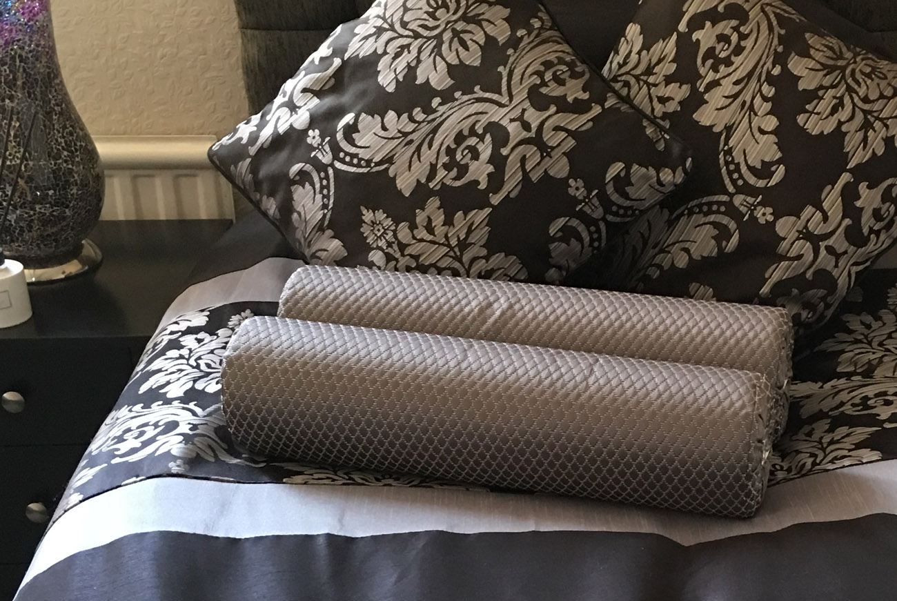 As part of my brand rep agreement I was offered one free cushion. I chose an Arabella bolster in pewter. As this is to go in my guest bedroom I also purchased a second one as this room has twin beds.